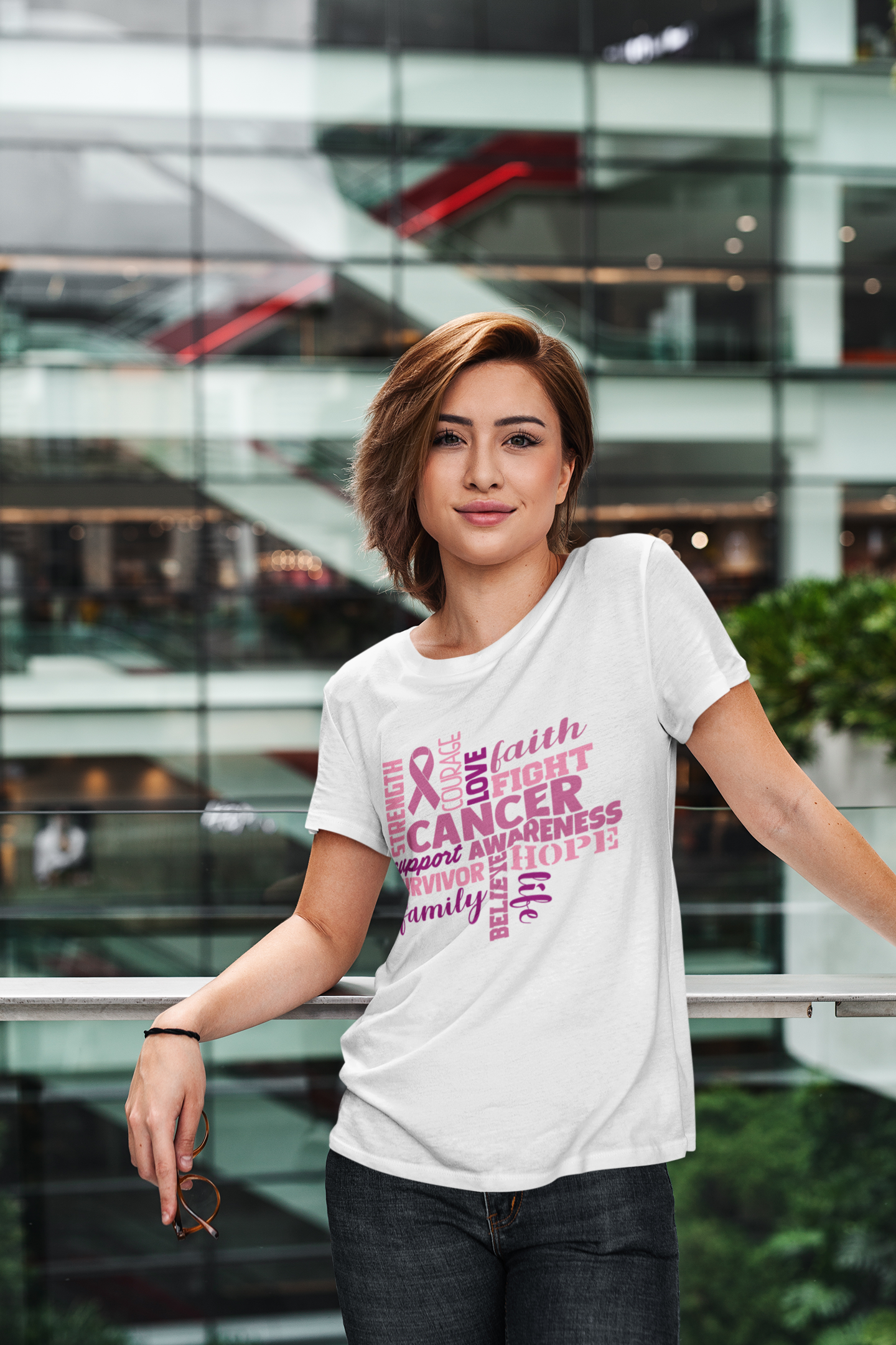 This unique Breast Cancer Awareness word cloud shirt is the perfect way to show your support for Breast Cancer Awareness.